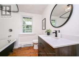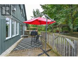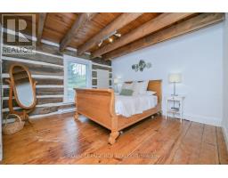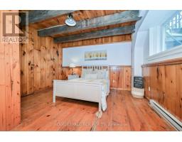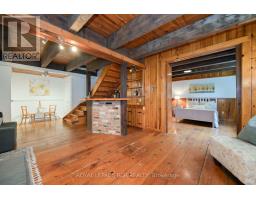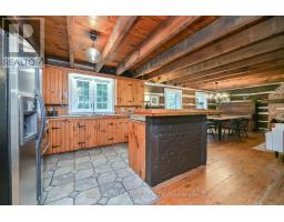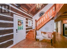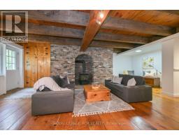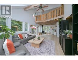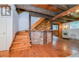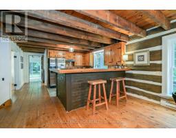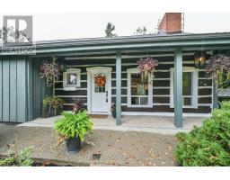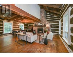 Tucked away in the scenic hamlet of Alton, Ontario, just steps from the area's best hiking trails, world-class golf, local artisan shops & fine dining, this charming modern rustic log home is a rare opportunity to own a slice of serenity w/o compromising on convenience. Offering a perfect blend of timeless character & modern comforts, this 3+1 bed, 2 bath home sits on a beautifully private 1-acre lot. As you approach the house, you're immediately struck by the inviting water feature & the warmth of the log/timber construction, which blends seamlessly into the natural surroundings & driveshed w/power ideal for hobbyists, extra storage, or a workshop. Step inside & be greeted by open concept living/dining/kitchen area boasting exposed log beams, wide-plank hdwd floors anchored by a massive wood-burning fireplace crafted from reclaimed brick, spacious kitchen w/breakfast bar, an abundance of counter space & open to the dining area, perfect for hosting or enjoying a quiet night in. Versatile main floor bedroom offers flexible usage as a home office, formal dining room, or den. The great rm is a stunning space featuring soaring ceilings, propane fireplace, oversized windows & a w/o to the back deck, filled with sunshine by day & warm glow by night. Updated 3-pc bath w/walk-in shower, stylish finishes & convenient main flr laundry. Upstairs, you'll find 2 generously sized bedrooms offering ample closet space, warm wood details, peaceful treetop views & updated 4-pc bath w/modern fixtures & a classic clawfoot tub. Primary bedroom is enhanced by a bonus loft space that overlooks the great room below. Use it as private reading retreat, yoga/workout area. The lower-level rec room is perfect for hosting gatherings w/bar, w/o to backyard, & add'l bedroom. In the backyard, soak your cares away in the hot tub, gather w/family & friends around the massive firepit, or enjoy outdoor dining and entertaining under the covered gazebo. Bonus bunkie & pizza oven completes this backyard. (id:61594)