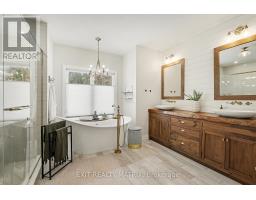 *OPEN HOUSE SATURDAY FEB 7TH 2-4PM* Prepare to discover the pinnacle of luxury country living in this breathtaking custom designer-built estate, perfectly poised on a premium, private treed lot just shy of four acres. Imagine waking up to mornings flooded with light, where the cathedral ceilings soar above elegant wood beam accents, setting the stage for unforgettable gatherings around the colossal 11-foot quartz island that anchors the open-concept gourmet kitchen, complete with a massive walk-in pantry and walls of fenestration framing serene outdoor views. The main floor offers a private sanctuary in the primary suite, boasting a walk-through closet, a highly upgraded ensuite with custom solid wood vanities and a large soaker tub, and direct access to a cozy, fireplace-warmed sunroom-your perfect year-round retreat. From the double attached garage, a large mudroom and main-floor laundry ensure family life stays organized, while two spacious children's bedrooms are connected by a high-end Jack and Jill washroom and a charming, flexible nook area, ideal as a reading retreat or homework station. The lower level is an entertainer's dream playground, featuring a sprawling bar area, a dedicated movie room for cinematic nights, and a generous kids' playroom beside it. Also on the lower level, a fourth bedroom, a fully equipped gym, and convenient walk-up garage access-perfectly accommodating multi-generational living. This dream is complete with an absolutely massive detached shop (32ft x 48ft) , featuring two large bays, a third side bay, and a loft, providing an incredible space for storing every toy and piece of equipment, cementing this home as the ultimate rural escape, truly overflowing with too many high-end, custom finishes to count. Don't miss out, book your private visit today! (id:61594)