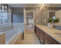 Stunning detached 4+1 bedroom 2-storey home in The Preserve, one of Oakville's most sought-after Uptown neighbourhoods. This meticulously maintained residence is loaded with upgrades throughout. The main level features 9' ceilings, hardwood floors, crown moulding, custom eat-in kitchen with centre island, breakfast bar, high-end stainless steel appliances, built-in pantry, granite countertops, and a walk-out to an incredible backyard complete with a synthetic deck, hot tub, and children's playground-perfect for entertaining and family living. Enjoy a spacious family room with coffered ceiling and a gas fireplace, along with a separate dining room, elegant living room with a second gas fireplace, and a convenient 2-piece powder room completing the main level. The upper level offers four generously sized bedrooms, including a bright and expansive primary suite with a walk-in closet and a luxurious 5-piece ensuite featuring a glass shower, soaker tub, and double sinks. The second and third bedrooms offer semi-ensuite access, along with an additional 4-piece bathroom, upper-level laundry, and a versatile hallway nook ideal for a home office or study area. The finished lower level boasts a large recreation area with built-in cabinet and bar fridge, a fifth bedroom (currently used as an exercise room) with a 2-piece ensuite, and ample storage space. A convenient location close to top ranked schools, shopping, parks & trails, Sixteen Mile Rec., highway and GO access. Don't miss out! (id:61594)