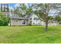 DISTINCTIVE BUNGALOFT WITH 3,300+ FINISHED SQ FT, A HEATED DETACHED 3-BAY SHOP, & MORE THAN HALF AN ACRE OF LANDSCAPED GROUNDS! From the road, this bungaloft already knows how to stand apart with its dramatic roofline, oversized windows, and beautifully kept grounds, while the heated detached 3-bay shop is only the first hint of what unfolds throughout the home. Built in 2019 by Linwood Homes and set on more than half an acre just minutes from downtown Elmvale and a quick drive to Wasaga Beach, this property offers over 3,300 finished sq ft, manicured gardens, a large stone patio, a timber-frame hardtop gazebo, landscape lighting, and a sprinkler system in both the front and back yards. The heated and insulated shop features three garage doors, a commercial-grade Liftmaster door opener, and separate 200 amp service, while the home carries that same level of intention with soaring vaulted ceilings, Douglas Fir exposed beams, skylights, LED lighting, and floor-to-ceiling windows pulling in natural light at every turn. Quartz countertops, dark shaker-style cabinetry, a tile backsplash, a double under-mount sink, abundant storage, a massive centre island with seating, and commercial-grade Jenn-Air appliances anchor the kitchen, opening to a dining area with extra-wide patio doors and a living room with full-height windows, plus a separate family room with skylights. Two main floor bedrooms share a 4-piece bathroom, while the upper-level primary offers a walk-in closet with built-in organisers and a 4-piece ensuite with an air jet tub and imported Italian glass shower. The partially finished basement adds a large rec room, additional bedroom, full bathroom, and a utility room with an owned tankless water heater, water softener, UV system, and 4-filter water treatment setup, while triple-pane windows, blown-in insulation, and a Generac round out this #HomeToStay! (id:61594)