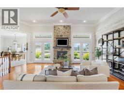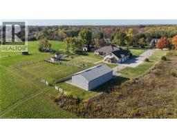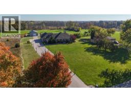Offering nearly 7,000 sq. ft. of finished living space - 3,974 sq. ft. above grade and 2,938 sq. ft. below, this custom-built, solid brick bungalow loft combines modern sophistication with country elegance. Perfectly set on a serene 1.52-acre estate in Cambridge's prestigious North Dumfries Township, it's designed for both grand entertaining and private, everyday living. A rare floor plan for a bungalow, it features oversized rooms, a thoughtful layout, and two distinct wings. The main level showcases a chef's kitchen with an oversized island, generous dining area, walk-in pantry, and a formal dining room ideal for gatherings. A separate library or office with coffered ceilings adds charm and flexibility, while the secluded primary suite boasts a double-sided gas fireplace shared with its spa-like ensuite. Additional bedrooms are tucked into their own wing for maximum privacy. The fully finished lower level expands your living space with two bedroom suites, a vast entertainment zone, a glassenclosed home gym, and abundant storage. A finished loft with balcony accessible via interior stairs and an exterior walk-up adds even more versatility. Nearly 1,000 sq. ft. of covered front and rear porches connect you seamlessly to the outdoors. The extra-deep attached garage accommodates up to five vehicles and includes a fourth rear garage door to the backyard. A 30 x 52 shop offers exceptional space for hobbies, projects, or additional storage. Built with premium materials and exceptional craftsmanship, this residence offers unmatched comfort, privacy, and enduring quality - an ideal blend of rural tranquility and proximity to city conveniences. (id:61594)