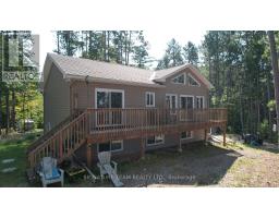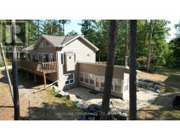 A Round Lake Waterfront Property, with amazing sunsets from the main deck and sand beach that is over 1km long for walking! This home (built in 2017) offers 4 bedrooms, 3 baths, 2 full kitchens, and a gazebo that can be used all year round with wood airtight stove! Not to mention the 40ft x 30ft, 3 bay detached garage, automatic back-up generator (automatically powers up when the hydro goes out), 150ft of sandy shoreline and sandy lake bottom (zero weeds), excellent for swimming. Basement is fully finished (dry-core subfloor panels throughout), and boasts the 2nd kitchen and rec room for entertaining, a 3 pc bath/laundry, walk-out access to the gazebo, outside patio, and waterfront. All appliances are included. This property has all the features you would expect, and more, from a waterfront home and the view through the pines is amazing from the deck! The driveway from Round Lake Rd is shared with neighbors and a deeded right of way on title. Annual Road Maintenance fees is $400, includes snow plowing and minor grading of the road. (id:61594)