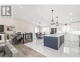 Welcome to this beautifully renovated bungalow nestled on a peaceful court, offering the perfect blend of country tranquility and urban sophistication. Situated on a sprawling 1.15-acre lot, this home boasts a modern design with an inviting open-concept layout, ideal for both relaxation and entertaining. Step inside to discover a bright and airy living space, highlighted by a large kitchen island, sleek finishes, and stylish fixtures. The main floor features three spacious bedrooms and two full bathrooms, providing comfort and convenience for the whole family. Downstairs, the fully finished basement offers additional living space with two more bedrooms, a cozy family room, a dedicated office space, and another full bathroom—perfect for guests or extended family. Outside, enjoy the best of both worlds with a heated 2-car garage, a large built storage shed, and a chicken coop providing fresh eggs daily. The property also features a picturesque small pond, adding to the serene outdoor setting. Located just minutes from urban amenities yet surrounded by nature, this one-of-a-kind home is a rare find. Don’t miss your chance to experience modern country living at its finest! (id:61594)