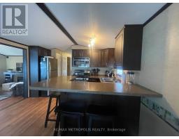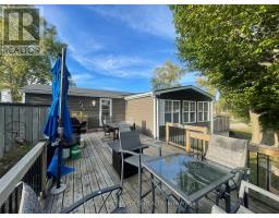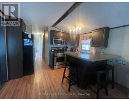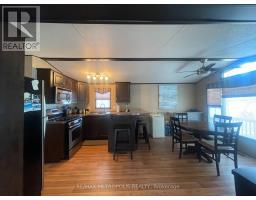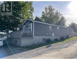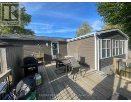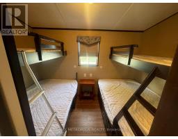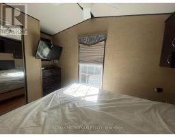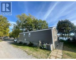 Absolutely one of the most stunning waterfront lots in Cherry Beach Resort! Perfectly positioned on the exclusive peninsula, this property offers unobstructed water views on both sides a rare and sought-after feature. Enjoy privacy and panoramic beauty with Flakes Cove on one side for peaceful mornings and East Lakes open waters and sunsets on the other. The lot features tiered landscaping with natural rock, mature trees, a lakeside firepit, spacious deck, interlocking walkway with lighting, shed, and all exterior furnishings included. The 2012 Northlander Hickory model offers 696 sq. ft. of living space with 2 bedrooms, 1 bath, and sleeping space for up to 10 guests. Fully furnished and turn-key with a large picture window, propane furnace, central air, surround-sound system, TV, and patio doors to the deck. Resort amenities include heated pool, courts, splash pad, recreational centre, docks & more. Seasonal park (May 1 - Oct 31). Annual fees $16,015 + HST include land lease, taxes, hydro, water, sewer & amenities. (id:61594)