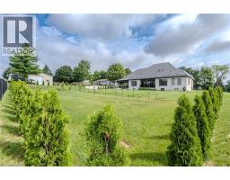 Welcome to this stunning custom-built masterpiece, where luxury meets thoughtful design in every detail! This exceptional 6 bedroom (4+2) , 5 bathroom (4+1) home offers roughly 5,471 sq. ft. of elegant and functional living space. Nestled in an Executive new subdivision just 10 minutes from Brantford, this residence features a rare 4-car garage and a spacious 6-car driveway perfect for car enthusiasts or large families. From the moment you arrive, you're greeted by grand arched double doors that open to a warm and inviting foyer. The main living area boasts 11-foot coffered ceilings, a cozy fireplace, custom built-ins, and expansive windows that flood the space with natural light. Designed for entertaining, the open-concept layout flows seamlessly into the gourmet kitchen, complete with high-end KitchenAid appliances, quartz countertops, a gas stove, walk-in pantry, and wine fridge. Three bedrooms on the main level feature private ensuites and walk-in closets, including a luxurious primary suite with dual walk-in closets, spa-like ensuite with a soaking tub, and a private walk-out to the backyard. The fully finished basement offers 9-foot ceilings, oversized windows, a kitchen, ample storage, and a separate entrance connecting to the oversized garage ideal for an in-law suite or rental potential. Additional features include a durable metal roof, premium finishes throughout, and meticulous care from top to bottom. Builders own home so expenses have been spared. Don't miss this rare opportunity to own in one of the area's most desirable communities. Book your private showing today! (id:61594)