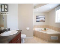 Welcome to 18 Gaal Court, tucked away on a quiet cul-de-sac in the highly sought-after West Brant community. Surrounded by parks, walking trails, & schools, this well-maintained Dubecki-built home offers the perfect blend of space, comfort, & thoughtful updates. The double-width driveway leads to a double-car garage & an inviting front entrance. Inside, ceramic tile welcomes you into a bright foyer with convenient garage access & a main-floor powder room. Hardwood flooring flows throughout the living room, staircase, upper hallways, & bedrooms, creating a warm & cohesive feel. The open-concept main floor is ideal for both everyday living & entertaining. The kitchen features ceramic tile flooring, ample cabinet & counter space, crown moulding, a stone backsplash, decorative glass cabinetry, & a large centre island perfect for meal preparation. Stainless steel appliances & a gas stove complete the space. The adjacent dining area easily accommodates family gatherings & features sliding patio doors that lead to a covered deck & a fully fenced backyard, perfect for relaxing or hosting during the warmer months. The living room is generously sized & anchored by a natural gas fireplace, complemented by pot lighting for a bright yet cozy atmosphere. Upstairs, the spacious primary bedroom features vaulted ceilings, hardwood flooring, a large walk-in closet, & a 4-piece ensuite bathroom. Two additional bedrooms with large windows & closets, along with a full 4-piece bathroom, complete the second level. The fully finished basement adds valuable additional living space, featuring a large recreation room with luxury vinyl flooring, a convenient 2-piece bathroom, a cold room, & an oversized laundry area with plenty of storage. Additional updates include fresh paint throughout, new light fixtures, owned water heater & water softener, AC (2022), garage door opener with remote (2025), new front door (2021), & a roof replaced in 2014, offering peace of mind for years to come. (id:61594)