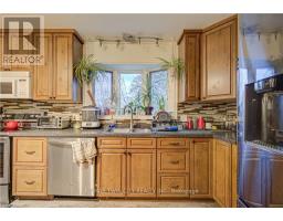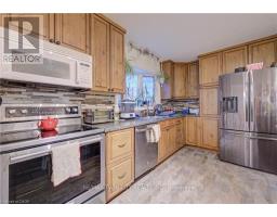 RAISED BUNGALOW WITH LARGE BACKYARD. Welcome to 18 Gilston Parkway in the charming town of Paris! This beautifully maintained raised bungalow offers a perfect blend of comfort, functionality and outdoor living. The main floor features an open-concept layout, seamlessly connecting the living and dining areas, a large bright kitchen, 3 spacious bedrooms and a shared 4-piece bathroom which completes this level. Downstairs, the fully finished basement provides exceptional additional living space, including a large recreation room, 3-piece bathroom, a 4th bedroom, laundry room and ample storage throughout. A separate entrance from the basement to the backyard adds flexibility and potential. Step outside to enjoy the large, fully fenced backyard surrounded by mature trees for added privacy. This outdoor retreat features a fire pit, a shed and a covered deck with stairs leading down to a patio-perfect for entertaining or unwinding. Parking is a breeze with a single-car garage and a double-wide driveway accommodating up to 5 additional vehicles, for a total of 5 parking spaces. Ideally located close to parks, the Grand River, greenspace, Highway 403, shopping, and everyday amenities. (id:61594)