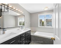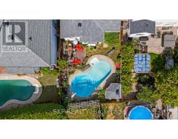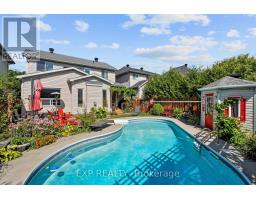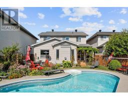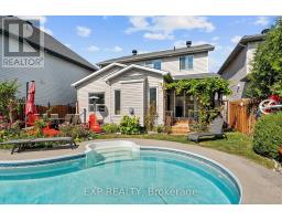 Welcome to this stunningly updated 3+1 bedroom, 4-bathroom detached home featuring a gorgeous backyard retreat with modern updates across all levels and located on a quiet, wide family-friendly street in Barrhaven. From the inviting front porch, step into a bright tiled foyer with soaring ceilings and crown mouldings. The main level flows seamlessly with 9ft ceilings, hardwood flooring and very functional custom-built main floor private office, with barn door & built-ins, huge spacious living room filled with natural light, formal dining room with gas fireplace. The heart of the home is the stunning eat-in kitchen, featuring crisp white cabinetry, stainless steel appliances including a gas stove, tiled backsplash, marble flooring, with patio door to back yard oasis and abundant storage. A built-in breakfast bar and desk nook add extra functionality, while direct access to the backyard makes entertaining effortless. Just off the kitchen, the main floor laundry room doubles as a pantry with additional cabinetry and counter space. Upstairs, you will find three generously sized bedrooms, including a primary suite with his-and-hers custom closets and a luxurious 5-piece ensuite with soaker tub and separate shower. Two additional bedrooms are bright and versatile, complemented by crown mouldings and a full bathroom. The fully finished lower level expands the living space with a large rec room, a 4th bathroom, an additional office/den, storage room and a workshop completes this level. Step outside to your private backyard oasis featuring an inground pool, pool house, lush gardens, patio space, pergola, and a separate decked area ideal for relaxing or hosting summer gatherings. This move-in ready home offers fantastic curb appeal and is close to schools, parks, sports fields, recreation centers, shopping, transit, and all the amenities Barrhaven has to offer. Visit www.mprealty.ca for more information. (id:61594)