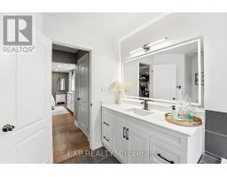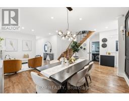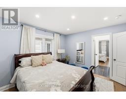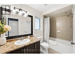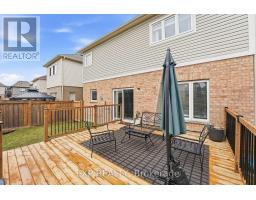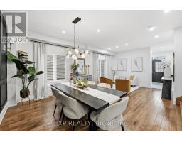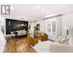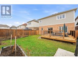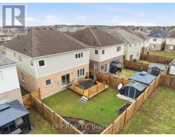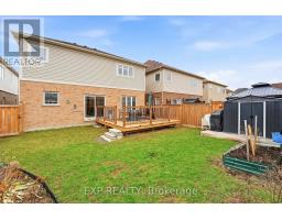 Set on a quiet Bowmanville street, this bright 4-bedroom, 4-bath detached home delivers the layout buyers wait for: open, spacious and easy to live in. The main floor offers 9-ft ceilings, hardwood floors, a welcoming front living/dining space, and a rear family room anchored by a built-in TV wall with electric fireplace. The eat-in kitchen pairs dark cabinetry, stone counters, a tiled backsplash and stainless appliances, with a walkout to the backyard for easy indoor/outdoor living. Upstairs, you'll find 4 generous bedrooms and 3 full baths, including a spacious primary retreat with walk-in closet and updated ensuite with soaker tub and separate shower. Main-floor laundry/mudroom with garage access adds everyday function, while the full unfinished basement gives you room to grow. Outside, the fully fenced backyard features garden beds, a storage shed and an approx. 16' x 16' deck made for summer dinners and weekend lounging. Double garage, double driveway and carpet-free floors complete the package. Close to parks, schools and Highway 407 access, it's a strong fit for buyers who want both everyday function and room to grow. (id:61594)
