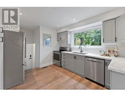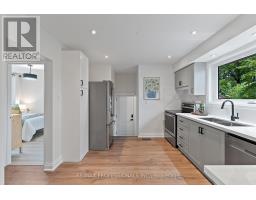 Welcome to 18 Lavington Drive, a fully renovated 1.5 storey detached brick home in Etobicoke's Martin Grove Gardens neighbourhood. Situated on a 52 x 108 lot with a charming front porch and excellent curb appeal, this turnkey home offers modern updates, a functional layout and an enviable setting directly across from Martingrove Gardens Park. The main level features a foyer with coat closet, a bright living room with wide-plank flooring, pot lights and a large window overlooking the park, a dining room with a walkout to the backyard, a renovated kitchen with quartz counters and backsplash, stainless steel appliances, pot lights, a double sink & a picture window overlooking the backyard, a convenient updated powder room, as well as a versatile bedroom. On the second level there a two spacious bedrooms with walk-in closets, office nooks and large windows as well as a 3-piece bath with glass shower and modern finishes. The lower level boasts a massive recreation room with panelling, broadloom and track lights, as well as a combined laundry/storage area. The backyard is perfect for family living and entertaining with an oversized deck, mature trees, large lawn, concrete patio, new fence (2023), shed and gas BBQ hookup. A carport and newly repaved private driveway provide parking for three cars. Updates include new windows/doors (2025), modern flooring with Aria vents, new baseboards, updated plumbing/electrical, a smart thermostat & much more! Ideally located directly across from newly upgraded Martingrove Gardens Park with a playground, splash pad, tennis, pickleball and baseball diamonds. Near local shops like Montesanto Bakery and Martin Grove Fish & Chips, Westway Centre, Costco, West Deane Park, Weston Golf Club and local schools. Easy access to TTC, Hwys 401& 427 and Pearson Airport! With contemporary touches and a desirable park-side location, 18 Lavington Dr is a move-in ready home offering outstanding value in a mature, family-friendly Etobicoke neighbourhood! (id:61594)