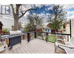 A must see! Magnificently renovated 3 bedroom modern semi-detached home with a legal front parking pad. This home offers amazing convenience in a highly desirable location. The main floor boasts a stunning open-concept kitchen with built-in stainless steel appliances, gas range, kitchen island, quartz countertops, and a generous amount of custom cabinetry. Full wall floor-to-ceiling sliding doors provide a great amount of natural light and lead to a new composite deck that overlooks a beautifully landscaped yard with a pergola-covered seating area with a functional storage shed. The impressive primary bedroom features a soaring 10-ft vaulted ceiling. Fully renovated upstairs bathroom with a floating double-sink vanity and heated floors. Underpinned basement with 8-ft ceilings features sleek modern flooring, pot lights, a built-in media center, and a luxurious bathroom showcasing an oversized glass shower, heated floors, and high-end contemporary finishes. Additional features include custom roller shades throughout, solid wood interior doors, hardwood flooring on both main and second levels. This is a home that truly has it all - modern design, thoughtful upgrades, and exceptional living spaces inside and out. Move to this great community with amazing schools. Quick walk to the vibrant Danforth Avenue, Restaurants, Shops and TTC subway transit. (id:61594)