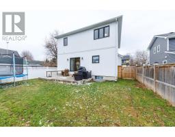 Stunning custom built 3+1 Bedroom, 3.5 Bath home with 1975 sq ft of finished living space, in a quiet and highly desirable location just steps to the Lake and public beach access. Enjoy a lake view from your 2nd level bedroom! As you step inside you'll love the open concept design, 9ft ceilings, upgraded light fixtures, and engineered hardwood flooring. The spacious living room offers a cozy electric fireplace and an abundance of windows, allowing for lots of natural light throughout. The modern kitchen features a large island, sleek countertops, white cabinetry, and stainless steel appliances. The dining area features patio doors that lead to your fenced backyard with gorgeous stamped concrete patio. Convenient inside access to the garage and a 2pc bath completes the main level. The 2nd floor offers convenient upper level laundry, 4pc bath, 3 spacious bedrooms including a primary suite with double closets and a 3pc ensuite with an oversized custom tile and glass shower. The lower level is fully finished with a large rec room, 4th bedroom, and another 3pc bath. Don't miss your opportunity to live in a newer, well-kept home on a quiet dead-end street just steps to the lake! (id:61594)