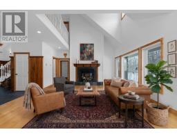 METICULOUSLY KEPT 4000+ SQ FT ESTATE ON 1.33 ACRES WITH A WALKOUT BASEMENT & EXCLUSIVE ACCESS TO 52 ACRES! Set on 1.33 acres in a prestigious estate neighbourhood in sought-after Horseshoe Valley, this well-maintained 2-storey home enjoys a treed setting with no homes directly in front or behind. A peaceful cul-de-sac address, lovely dormer windows, a large covered front porch, and an attached 2-car garage give this home a memorable first impression. Enjoy exclusive access to approximately 52 acres of private land for Trillium Trail residents, featuring nature trails, lookout points, open field space, and shared use of a storage shop. Hardwood flooring carries throughout the main and second level, while the combined living and dining room is defined by a soaring vaulted ceiling, oversized windows, a fireplace, and a double garden door walkout. Beautifully finished, the kitchen features quartz counters, built-in stainless steel appliances, white cabinetry with some glass inserts, a centre island, and breakfast bar seating. Main floor laundry with garage access adds function, while the main floor primary bedroom offers a private walkout to the back deck and a 5-piece ensuite with a soaker tub, separate shower, and water closet. Upstairs, 2 additional bedrooms, a full bathroom, and a loft-style family room with a gas fireplace create an upper level with plenty of character. The fully finished walkout basement with garage access and in-law potential extends the home's living space with a large rec room featuring a fireplace and double garden door walkout, along with a wet bar, bedroom, full bathroom, and large storage area. A new furnace in 2026 adds peace of mind. This exceptional location places you minutes from golf courses, Copeland Forest, ski hills, country clubs, and Vettä Nordic Spa, while the new Horseshoe Heights Public School is within walking distance, and Orillia and downtown Barrie are both under 25 minutes away. (id:61594)