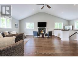 Located On One Of The Most Desirable Streets In The Bluffs, This Impressive Hill Crescent Residence Offers Exceptional Quality, Thoughtful Design, And Outstanding Functionality. Set On A Rare 100FT Wide Lot, The Exterior Combines Timeless Stone And Durable Vinyl Siding, Accented By Landscape Lighting, A Heated Dble-Wide Driveway, And A Covered Front Veranda With Clear Cedar Tongue-And-Groove Ceiling. The Fully Fenced Backyard Is Ideal For Entertaining, With Professional Hardscaping, Mature Trees Providing Privacy, And A Custom Timber-Frame Pergola Over The Patio. Inside, The Grand Foyer With Marble Flooring, Dble Closets, And Wide Staircase Sets The Tone For The Homes Refined Finishes. Wide-Plank Engineered Oak Floors, Plaster Crown Moulding, Pot Lighting, And Custom Fireplaces Are Found Throughout. The Gourmet Kitchen Features Soft-Close Cabinetry, Quartzite Countertops, A Dramatic Backlit Island, And Top-Of-The-Line Thermador Appliances, Including A Dual-Fuel Range And Undercounter Wine Cooler. Upstairs, Cathedral Ceilings Enhance The Spacious Family Room With Custom Gas Fireplace And The Well-Appointed Bdrms. The Primary Suite Offers A Walk-In Closet, Gas Fireplace, And A Spa-Like 5-Piece Ensuite With Marble Accents, Glass Shower With Rain Head, Freestanding Tub, And Dble Vanity. Additional Bdrms Feature Cathedral Ceilings, Custom Window Coverings, And Generous Closet Space. A Self-Contained Lower-Level Apartment With Separate Entrance, Modern Kitchen, Heated Porcelain Flrs, And Full Bath Provides Excellent Flexibility For Extended Family Or Rental Potential. The Heated Garage Is Ideal For Car Enthusiasts, With Epoxy Flrs, Dble-Height Ceiling, Water Access, And Convenient Drive-Through Capability. This Meticulously Maintained Home Is Steps To Parks, Trails, And The Waterfront, With Downtown Toronto Just A Short Drive Away. A Rare Offering In A Family-Friendly, Nature-Focused Community. This Home Is An Opportunity To Live In True, Unsurpassed Turnkey Luxury. (id:61594)