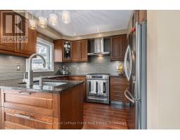 This is the home you have been waiting for. Fully hardwired for Networking. 100amp service, Custom baseboards & trim work throughout. Notched area under floor to keep mats from shifting.Custom shoe rack with heat vents installed to dry shoes, Front hall cubby hole/bench style built in storage, kick plate for central vac. Upgraded kitchen sockets include USB port for easy charging. All light switches upgraded to Decora switches. French style patio doors with integrated blinds. Hidden storage upstairs landing perfect for seasonal decor etc. Fully finished basement w/pot lights & built in glass shelving unit, media area wired for 5.1 surround sound. Basement Closet has wire shelving system. Office has built in custom cabinetry & pocket door for privacy. Laundry room has custom cabinetry, folding table, detergent dispensing tower & extra storage. Irrigation system front & back yard & under soffit for baskets. Light sockets integrated into brick for Xmas lights, Custom interlocking garbage can storage at side of home and driveway cut out to keep cans upright. COMPLETE KITCHEN AND MAIN FLOOR RENO INCLUDING CENTRAL VAC 2016, GRANITE COUNTERS, GLASS BACK SPLASH ,BUILT IN WINE RACK, HUGE AMOUNTS OF CABINETRY & GRANITE COUNTERS RUNNING ALONG LENGTH OF KITCHEN, WITH ADDITIONAL PREP SINK, DRAWER STYLE GARBAGE, RECYCLE &GREEN BIN STORAGE, ROOF 2018, NEW ATTIC INSULATION2018, AIR CONDITIONER & FURNACE 2020, ALL INTERLOCKING LIFTED, WASHED AND RESEALED 2024, CASEMENT WINDOWS THROUGH OUT HOME, 2016 AND 2023, FRONT DOOR INSTALLED 2023. Outdoor shed has hydro, bbq pergola, front entrance has been renovated with Polyroche stonework. Gorgeous Brazilian Jatoba hardwood in sunken living room with gas fireplace. Garage is insulated and updated with a fully installed heating system, ceiling fan, sink and full electrical, lots of recepticals including 240v, shop lighting and attic storage. 'Garaga' Brand garage doors, Soffit pot lights installed over the garage. Do not miss this one!! (id:61594)