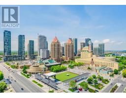 Stunning 2+Den Condo in the Heart of Mississauga - Unmatched Views of Celebration SquareWelcome to this beautifully upgraded 2-bedroom + den condo located in the vibrant heart of Mississauga, offering breathtaking, unobstructed views of Celebration Square right from your unit. Enjoy front-row seats to summer events, festivals, and spectacular fireworks on Canada Day and New Year's Eve-all from the comfort of your home.This modern, move-in-ready unit has been thoughtfully upgraded with high-quality finishes and contemporary touches throughout. The entire space features newly installed vinyl flooring (2024), giving the home a fresh and elegant look. The unit was also freshly painted in 2024, creating a bright and welcoming atmosphere. Stylish accent walls(2024)enhance the living room and both bedrooms, adding warmth, depth, and a designer touch to the home.The upgraded kitchen is a true showstopper, featuring a newly installed quartz countertop, elegant quartz backsplash, and a stunning waterfall edge design. It also includes a brand-new sink and modern faucet, along with new appliances installed in 2025, including a refrigerator, dishwasher, and microwave-perfectly blending style and functionality.The dedicated laundry room includes a newly installed AI-featured washing machine (2025), adding smart convenience to your daily routine.Enjoy enhanced lighting with newly installed pot lights throughout the unit, elevating the ambiance and sophistication of every room. The second bathroom has been fully upgraded with modern hardware and features a large Bluetooth-enabled mirror installed in 2025, combining luxury with technology.The versatile den provides the perfect space for a home office, study area, or additional living area.Ideally located just steps away from Square One Shopping Centre, along with easy access to public transit, dining, and entertainment, this condo offers the ultimate urban lifestyle in one of Mississauga's most sought-after locations. (id:61594)
