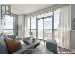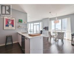 Discover the joys of lakeside living at Toronto's Westlake condo village community in South Etobicoke! This stunning suite is flooded with natural light from floor-to-ceiling windows, offering breathtaking panoramic views of Lake Ontario and the Toronto skyline. The open-concept layout features 2 bedrooms and 2 bathrooms, complemented by 9 ceilings and a thoughtfully designed floor plan. The spacious entrance includes a generous double-sized closet and convenient ensuite laundry with a full-size washer and dryer. Past the foyer, the upgraded kitchen, is perfect for cooking and entertaining, equipped with stainless steel appliances, quartz countertops, and breakfast bar seating for three.The open concept dining and living room offer unparalleled views of the Lake and allow for a generous entertaining space. The second bedroom, currently utilized as a den, is spacious enough for a queen bed and offers ample storage. Amazing views continue into the large Primary suite, with a full size ensuite and walk-in closet round out the suite. A village unto itself, the Westlake community has easy access to essential amenities, with Metro, Shoppers, LCBO, and more just an elevator ride away. Proximity to the Downtown core is a snap, with streetcars, buses, GO transit, and major highways, all at your doorstep. With two international airports less than 20 minutes away. Additionally, the Westlake community features an impressive 30,000 sq. ft. of amenities, including a 24-hour concierge, an indoor pool, a fitness centre with squash & racquetball courts, a children's room, a theatre room, a games room, and much more! Its a fantastic offering in the city! (id:61594)