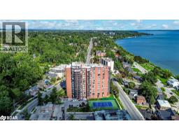 HIGHLY REGARDED BAY CLUB CONDO STEPS FROM KEMPENFELT BAY WITH UNBEATABLE AMENITIES, A STRONG COMMUNITY, & STUNNING SUNROOM WITH WATER VIEWS! Discover 1,210 square feet of bright, carefree living in this expansive condo located in the highly sought-after Bay Club, just steps to Kempenfelt Bay, scenic waterfront trails, and shoreline parks with playgrounds and open green space overlooking the water. Enjoy a truly walkable lifestyle with downtown shops, restaurants, cafes, cultural venues, and entertainment all within minutes, plus easy access to public transit routes connecting you throughout Barrie. This well-established residence is celebrated for its reputable management and strong sense of community, with secure entry and beautifully landscaped grounds enhancing the appeal. Oversized windows flood the immaculately maintained open concept living, dining, and kitchen area with natural light, while the enclosed sunroom extends the living space year-round with spectacular southeast views of the bay. This unit is also the only 2-bedroom floor plan in the building without a step down, providing ease and functionality. The spacious primary retreat offers a private 4-piece ensuite, complemented by a second bedroom and another full 4-piece bathroom, while an in-suite laundry room with storage adds everyday convenience. Exceptional resort-style amenities elevate your lifestyle, including an indoor pool, sauna, gym, racket and squash court, tennis court, library, party and games rooms, guest suites, workshop, potting room, car wash bay, bike storage, and ample underground and visitor parking. Step into a community that delivers more than just a #HomeToStay, and discover effortless condo living with every comfort and convenience right at your doorstep. (id:61594)
