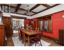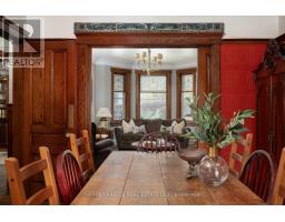 For locals, Indian Road is synonymous with dreamy, turn-of-the-century homes that sit like grand estates along a family-friendly tree-lined street, moments from the gates to the city's greatest playground (High Park) and the energetic Roncesvalles village. Residents in this pocket rarely move, with everything one could need to create a lifetime of memories at your doorstep. This detached 3-storey Edwardian masterpiece celebrates a glamorous era with original panelled millwork, wainscoting, and a handsome staircase. Main level features a wood-clad foyer with gas fireplace, pocket-doors that lead to the family room w/ fireplace and the first of several stained-glass bay-windows, a formal dining room that flows into a large updated kitchen, and a tucked away powder room/WC. The 2nd floor offers three well-proportioned bedrooms and a sunroom/solarium, ideal as an office or extra bedroom. A bathroom with deep soaking tub and walk-in shower services this level. The 3rd floor adds three more generous bedrooms and a 3-piece ensuite bath. Full basement with laundry and additional rough-in for bathroom. Outside, a 32X128 ft lot with a wide drive leads to a double detached garage and an ample backyard. Mechanical updates include new plumbing, new hot-water boiler, 200-amp electrical service, and a newer recycled-rubber shingle roof noted for longevity. Live comfortably "as is", update to taste, or elevate into a showpiece - this address supports it all! (id:61594)