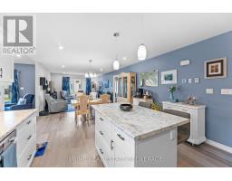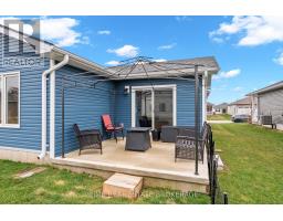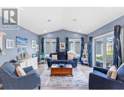 Welcome to life at the lake in Bluffs at Huron, a vibrant 55+ community where neighbours become friends and proudly call themselves the "Bluffers." This beautifully upgraded "Lakeside with Sunroom" model offers approx. 1,455 sq ft of thoughtfully designed living space, blending comfort, accessibility, and low-maintenance living near Lake Huron.The bright, open-concept layout features a sun-filled living room with fireplace and a stunning sunroom with vaulted ceilings, pot lights, and fresh paint (March 2026). The kitchen and dining area were also professionally painted in March 2026 and showcase new white artisan tile backsplash, laminate countertops, extended cabinetry, and a large island with seating for 3-4. Designed with ease in mind, the kitchen includes upgraded deep drawers, four extra-deep accessibility drawers, lazy Susan, under-counter garbage, under-cabinet lighting, and newer appliances including a gas stove and ice-maker fridge (approx. 3 years old).The home offers 2 bedrooms and 2 bathrooms, including a spacious primary suite with walk-in closet and ensuite featuring a 5 ft glass shower. Additional features include higher toilets, a dedicated laundry room with side-by-side Samsung washer and dryer, and thoughtful storage throughout.Enjoy a covered front porch with pull-down solar shade and a private concrete patio with gazebo. Attached garage and exterior storage add convenience.Exclusive community access to a clubhouse overlooking Lake Huron offers world-famous sunsets, plus a deeded beach path to the water. Amenities include a library, sauna, gym, billiards room, living room, kitchen, rec hall, pickleball court, indoor + outdoor cornhole, gazebo, + fenced dog park (2025), along with entertainment and live music year round! Ideally located beside Goderich Sunset Golf Club, 4 minutes to Point Farms Provincial Park, 8 minutes to downtown Goderich, 10 min. to Benmiller Inn and Falls Reserve + more! Move in and enjoy lakeside living this summer. (id:61594)