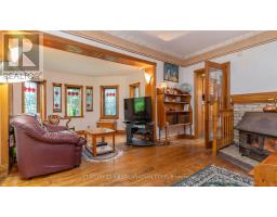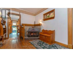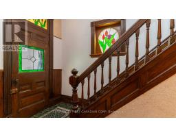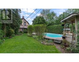Step into the elegance of a true 1896 Victorian gem, nestled on a beautifully landscaped 198-foot lot in a quiet, established neighborhood. This double-brick, solidly built home features original craftsmanship throughout from custom wood finishes and one-piece joists and rafters to a variety of exquisite stained glass windows (15 in total!). Inside, discover a harmonious blend of heritage and functionality: Main Floor: Formal parlour/office, powder room, spacious living room with a wood-burning fireplace, and a sunroom with a gas fireplace and hot tub. The dining room boasts oak finishes and a striking tin ceiling, while the kitchen offers rustic charm with pine cabinetry and durable linoleum/laminate flooring. Upstairs: 4 bedrooms and a convenient half bath, filled with natural light and antique character. Basement: Fully finished with a rec room, laundry area, and full bath perfect for extra living or entertainment space. In-law Suite potential, with a separate entrance. Outside, unwind on the patio overlooking a 30-foot swimming pool, surrounded by several serene ponds and professional landscaping. A bonus guest house with its own gas fireplace and electric baseboard heating offers rental or another In-law Suite. Additional highlights include: 198-foot lot with mature trees and tranquil outdoor spaces Original hardwood floors Updated electrical (200 amps) and owned water heater (23 years old) Roof replacements in 2024 (over sauna and dining room); rest of the roof replaced in 2017 New patio doors and skylights installed in 2024 Solid concrete and block foundation Furnace approx. 15 years old Located just steps from parks, top-rated schools, shopping, transit, nature trails, and bike paths this one-of-a-kind Victorian home is a rare opportunity to own a piece of history, thoughtfully updated for todays lifestyle. (id:61594)