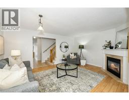 Beautiful FREEHOLD END-UNIT townhome offering 1,560 sq ft of above-grade living space, plus a finished rec room in the basement that can be used as a spare bedroom, home office, gym, or additional living space. Freshly and professionally painted throughout (March '26), this bright and inviting home features a functional main floor layout with a cozy gas fireplace and an eat-in kitchen complete with stainless steel appliances and a walk-out to a spacious backyard surrounded by mature trees, providing privacy. The main level also includes a convenient 2-piece bathroom and direct access to the garage. The second level offers a very large primary bedroom with a walk-in closet and a 4-piece ensuite, along with two additional spacious bedrooms and another 4-piece bathroom. Well maintained and move-in ready, this home offers exceptional value in a desirable location close to parks, schools, amenities, and convenient highway access. (id:61594)