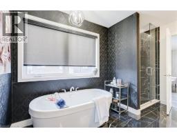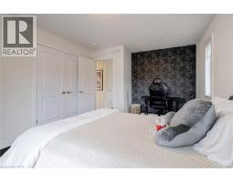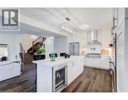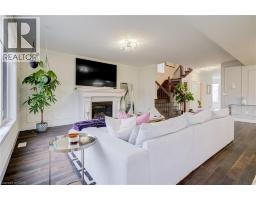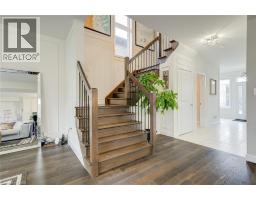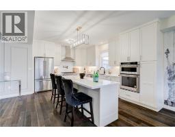 Beautifully upgraded 4-bed, 3-bath home in Ancaster’s sought-after Meadowlands! This executive residence features 10-ft ceilings, hardwood floors throughout, oak stairs, custom millwork, wallpaper accents, and stylish upgraded light fixtures throughout. The designer kitchen boasts quartz countertops, extended pantry cabinetry, pot filler, wine fridge, and built-in KitchenAid appliances including a 6-burner gas stove. Relax in the open-concept living room with a gas fireplace and electric blinds. Upstairs, enjoy a luxurious primary suite with spa-like ensuite featuring quartz counters, upgraded tiles, and a freestanding soaker tub. Includes home surveillance system, custom blinds, and a double garage. Located near Ancaster High School, big box stores, scenic trails, and waterfalls. (id:61594)