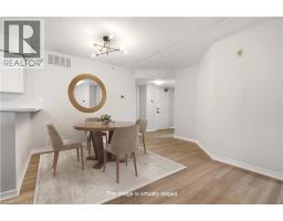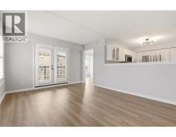 Updated end-unit condo with all major improvements already completed for its new owner. Step inside to a bright, open layout that sets this unit apart. The entry flows seamlessly into the dining area and kitchen, with the living space just beyond, creating an easy setting for both everyday living and entertaining. The kitchen features new countertops, sinks, and never-used appliances, complemented by contemporary light fixtures. Large windows fill the space with natural light, highlighting the luxury vinyl plank flooring throughout. This rare end-unit offers two private balconies, adding valuable outdoor space. The primary bedroom features large windows and an updated 3-piece ensuite. The second bedroom features direct access to its own private balcony. Both bathrooms have been refreshed with new countertops, sinks, toilets, and modern hardware. Additional features include in-suite laundry, an exclusive underground parking space, and a storage locker, along with access to a gym and party room. Located in the heart of Burlington, close to schools, shopping, groceries, and public transit, this unit offers a truly move-in ready opportunity. (id:61594)