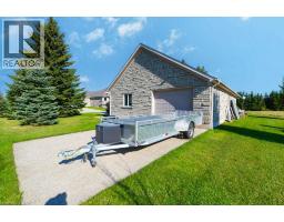 Welcome to 1825 Moser-Young Road. Situated in the hamlet of Bamberg (mins to KW). This Custom-Built-All-Stone Bungalow boasts 6,892 sq ft of finished living space. 4 Bedrooms, 4 Bathrooms - Oversized principal rooms, Vaulted Ceilings in M/Bedroom (w/Natural Gas Fireplace), 5 pc Ensuite, Dressing Rm / Walk in Closet & walkout to Patio & Vaulted Ceilings in Great Rm (Bruce Peninsula Stone & Natural Gas Fireplace), Colossal Dining & Entertaining Space for those special occasions with family & friends. Superb natural flow between Great Rm, Dining & Gourmet kitchen, boasting an enormous Island & prep sink (solid 1 pc leather finished granite) w/tons of natural light beaming thru walls of glass. 4 Walkouts to private upper & lower stamped concrete patios. Sunken Hot Tub. Perfect east-west exposure with views of farmland, bush & green space nestled on a fully & professionally Landscaped premium 1.4-acre estate lot w/ automated irrigation system. Approx. 8,800 sqft of stamped & exposed aggregate concrete Driveway, Patios & Walkways. Massive 3 car garage (37.5' x 27.75' x 11') w/walk-up from basement. Fully finished lower level, the ultimate entertainment experience, with your own built in Theatre (4k 9 foot Screen w/7.2 Dolby Yamaha System to rock the house, Glass Wine Cellar for those elegant dine-in dinners, Sports Bar, Games, Billiard, Guest suite & your getaway / cottagey feel peaceful retreat in the 4 season Lanai - French doors coming & going w/walk-up to lower stamped concrete patio. In-floor radiant heat in lower level & forced air heat / central air on main level (brand new Sept 2025). Kitchen, Island & lighting updated July 2025, Roof replaced in 2020 & extra insulation blown in attic in 2020. Rare offering! Over 1700 sqft Detached Matching Solid Stone 12 Car Garage with in-floor radiant heat, 3 pc washroom & Kitchenet. 13'9 ceiling, perfect for hobbyist, car buff, toy fanatic or dream workshop! Book your tour today, before this amazing family oasis is gone! (id:61594)