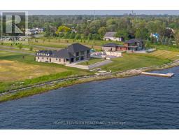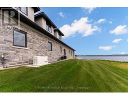 Bay of Quinte BeautySet majestically on the tranquil shores of the Bay of Quinte, this extraordinary custom-built waterfront estate is a rare jewel in Bellevilles luxury market. Completed in 2023 and crafted with unparalleled attention to detail, this home reflects a legacy of craftsmanship, sophistication, and pride. Welcome to the property that redefines lakefront living in every sense. Architectural Elegance Meets Modern Comfort Privately set on a full acre of land, this 5,000 sq. ft. masterpiece boasts a full stone exterior, a commanding presence from the road, and panoramic lake views from nearly every principal room. The design is both impressive and inviting: an open-concept layout anchored by 19-foot ceilings in the great room, and floor-to-ceiling Anderson triple glaze windows that immerse the home in natural light and tranquil waterfront vistas. Luxury in Every Detail The home features four spacious bedrooms, including two upper-level suites with south-facing balconies overlooking the Bay of Quinte. A striking second-floor bridge way connects the east and west wings, creating a dramatic interior experience rarely found in private homes. Premium features include: Motorized, high-quality blinds throughout Electric fireplace10-foot ceilings on the main floor, and 9-foot ceilings upstairs Heated ceramic flooring on the main level Engineered maple hardwood floors on upper level Custom sauna, offering the perfect relaxation space year-round Custom closets and cabinetry throughout the house. Gourmet Kitchen & Entertainer's Dream The chefs kitchen is a work of art, outfitted with top-of-the-line Miele appliances including: Stainless steel fridge & freezer Induction cooktop Wall oven Combi- steam wall oven Dishwasher Vacuum sealing drawer for sous-vide cooking147x42 quartz topped island Quartz counter tops and backsplash MUST SEE !!! (id:61594)