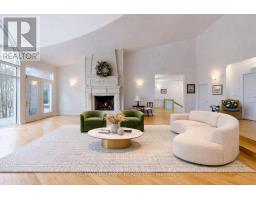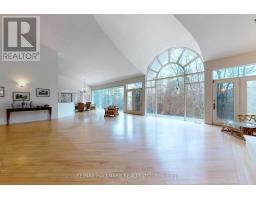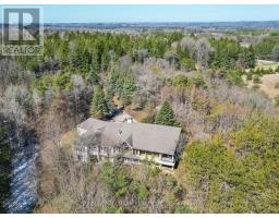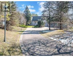 Situated On Nearly 5 Acres of Private Wooded Landscape, This Impressive 4 Bedroom Bungalow Offers Over 6,000 Sqft of Total Living Space, Full Walk-Out Lower Level, 4 Car Garage & Oversized Detached Workshop! Step into the dramatic great room, which showcases soaring vaulted ceilings, a striking palladium window that fills the space with natural light and overlooks the surrounding trees and nature. A floor-to-ceiling fireplace with ornate carved mantel anchors the space,while wall sconces and recessed lighting add warmth and ambiance. Multiple walkouts connect the interior to an impressive 120-foot deck that wraps around the home, creating seamless indoor-outdoor living. The open-concept kitchen overlooks the great room and breakfast area and is equipped with granite countertops, extensive cabinetry, a large centre island, built-in wall oven, cooktop, integrated refrigerator, and built-in dishwasher. The adjacent dining area features oak hardwood flooring, vaulted ceilings, recessed lighting, wall sconces, and a large picture window framing tranquil views of the property, with a walkout to the deck.The home offers spacious bedrooms with sitting areas and abundant natural light, while the primary ensuite includes natural stone finishes, a corner bathtub, and a glass shower. Additional functional spaces include a main floor laundry with garage access, widened staircase with glass railing to the finished lower level, and flexible rooms suited for recreation or meeting space. Outside, enjoy the interlocked courtyard, massive covered deck, stone wall front entrance, 4-car garage plus an approx. 1800 sqft detached workshop. This architecturally distinctive home offers privacy, generous living space, and a rare opportunity to enjoy a country estate setting just minutes from town, Highway 404, GO Transit, golf courses, parks, and everyday amenities. Don't miss out on this opportunity! (id:61594)