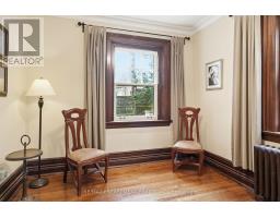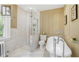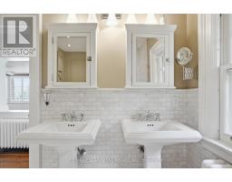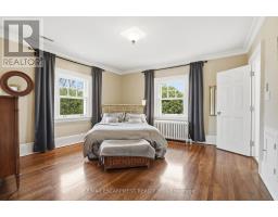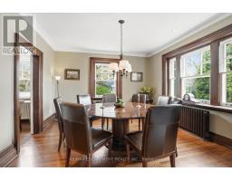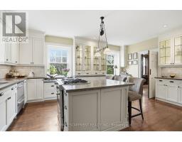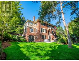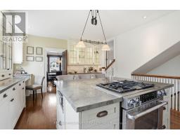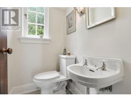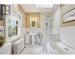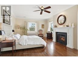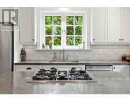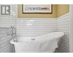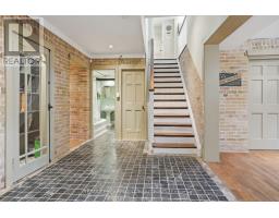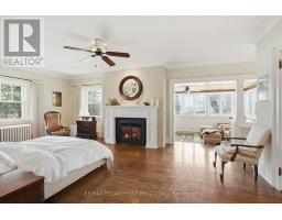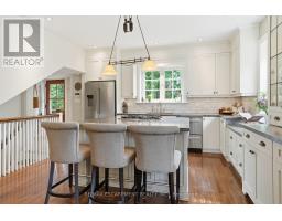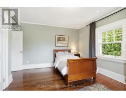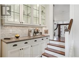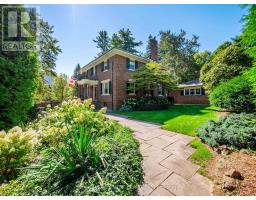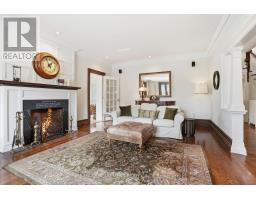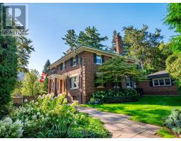 Set in the heart of Old Oakville on a generous, tree-lined lot, this distinguished red brick residence blends timeless architecture with thoughtful modern updates. Featuring 3+1 bedrooms and 5 bathrooms, each upper bedroom offers its own private ensuite, delivering a rare level of comfort and privacy. The main level is defined by rich character and natural flow, with original wood detailing, oak hardwood flooring, and a gradual-rise staircase anchoring the space. The living room is both refined and inviting, centered around a gas fireplace with custom paneling, while the formal dining room provides an elegant setting for entertaining. At the heart of the home, the kitchen features Blue Lagos soapstone countertops, custom cabinetry, a large island with integrated cooktop, and dual dishwashers. A built-in wet bar enhances functionality, while large windows connect the space to the surrounding greenery. A standout feature is the carriage house-inspired bar area with original doors offering a unique blend of heritage charm and everyday use. A sunroom with terracotta tile flooring provides a bright, relaxed retreat with direct access to the outdoors. The finished lower level extends the living space with a recreation room featuring a second gas fireplace, additional living areas, a bedroom, full bathroom, and dedicated wine display. Complete with a detached two-car garage, mature landscaping, and located just steps to the shops, restaurants, and waterfront of Old Oakville, this is a rare opportunity to own a character home in one of the area's most sought-after neighbourhoods. (id:61594)