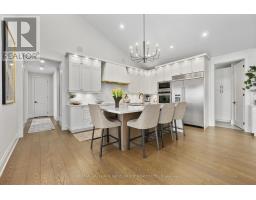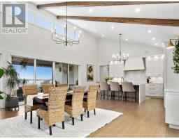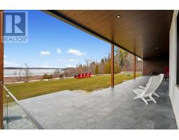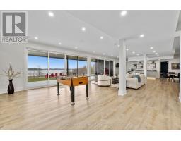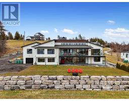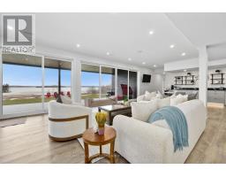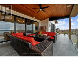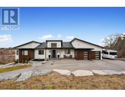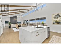 Set on 1.79 acres along the picturesque shores of Rice Lake, this extraordinary waterfront bungalow offers over 5,000 square feet of elevated living with five bedrooms, four bathrooms, a heated four-car attached garage, and a whole-home Generac generator for added peace of mind. A stunning great room sets the tone with soaring vaulted ceilings, exposed beams, and expansive upper windows that pour natural light into the space. A dramatic wall of windows with walkout captures sweeping lake views, creating a seamless connection between indoors and out. The living area is anchored by a striking fireplace with built-in cabinetry, adding both warmth and architectural interest. Designed for gathering, the open dining area flows effortlessly into a beautifully appointed kitchen featuring extra-high cabinetry, sleek matching countertops and backsplash, stainless steel appliances, and a large island with breakfast bar and statement lighting. A separate coffee bar with open shelving adds a stylish touch. Just beyond, a finished laundry room, guest bathroom, and mudroom with a dog wash station offer everyday function. The main level primary suite is a true retreat, with unobstructed lake views and a private walkout to the deck, perfect for quiet mornings by the water. The spa-inspired ensuite showcases heated floors, a double vanity, soaker tub, glass shower, and a private water closet. Two additional bedrooms and a full bathroom complete the level. The lower level continues to impress with in-floor heating throughout, a sprawling recreation and games room with a wall of windows overlooking the lake, multiple walkouts, a wet bar, theatre room, two bright bedrooms, and a full bathroom, ideal for guests or extended family. Outdoors, thoughtfully designed spaces invite you to relax and entertain with an upper deck offering both covered and open seating, a lower covered patio, tiered gardens, and lush landscaping, all set against the backdrop of tranquil waterfront living. (id:61594)