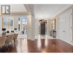 Welcome to this exceptional, executive residence on a quiet court in one of Mississauga's most sought-after enclaves. Backing onto a serene, private forest setting, this home offers the perfect blend of luxury, comfort, and timeless design ideal for discerning buyers seeking refined main-floor living. The moment you enter, you are greeted by a grand foyer with soaring 10-ft ceilings, elegant crown moulding, custom wainscoting and architectural detailing that carries throughout the home. The formal living and dining rooms impress with cathedral ceilings, designer lighting, and upscale finishes perfect for entertaining in style. At the heart of the home is a chef-inspired kitchen featuring premium appliances, custom cabinetry with illuminated uppers, a large granite peninsula and a seamless flow into the breakfast area and great room. The open-concept layout is enhanced by expansive windows showcasing tranquil views of the lush backyard and forest beyond. Designed with convenience and long-term comfort in mind, the main floor primary suite is a true retreat. Boasting a vaulted ceiling, spa-like ensuite with soaker tub and glass shower and a custom walk-in closet, this space offers privacy and ease of living rarely found in homes of this caliber. The upper level features a spacious loft area and generously sized bedrooms, including a private ensuite and a Jack & Jill bath ideal for family or guests. The professionally finished basement extends the living space with 9-ft ceilings, a guest bedroom with ensuite, a large recreation room with fireplace, a den, and a well-appointed kitchenette perfect for extended family or entertaining. Outdoors, enjoy a beautifully landscaped property complete with a two-tier deck, custom pergola and elegant stonework all backing onto nature for ultimate privacy. This is a rare offering combining luxury, functionality, and an ideal layout for those seeking the ease of main-floor living without compromising on space or elegance. (id:61594)