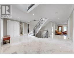 Welcome to an exclusive East Woodbridge enclave, where privacy, elegance, and prestige define everyday living. Surrounded by distinguished estate homes, this coveted turnkey property offers a rare balance of tranquil seclusion and convenient access to Vaughan's top amenities. Set on a premium lot, this custom-crafted residence showcases a refined exterior with mature trees creating a serene and secluded outdoor retreat. Inside, fully updated finishes, a grand foyer with Italian porcelain floors and a striking circular oak staircase with wrought iron detailing sets an impressive tone. The chef-inspired kitchen features granite countertops, a matching backsplash, and a functional island, seamlessly flowing into the family room with a cozy gas fireplace and views of the private backyard. A bright solarium extends the living space, offering a versatile sun filled retreat with direct access to both the garage and backyard-ideal for year-round enjoyment. Upstairs, the sun-filled layout leads to a luxurious primary suite with custom built-ins and a spa-like ensuite with heated floors. Three additional bedrooms share a beautifully designed, hotel-inspired bathroom. The finished basement offers added functional living space with a fireplace and 3-piece bath. Thoughtfully upgraded throughout, this exceptional fully updated property offers refined living in one of Vaughan's most desirable neighbourhoods. (id:61594)