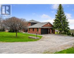 Stunning, freshly painted brick home with incredible countryside views, offering exceptional family living and the added versatility of a fully self-contained lower-level in-law suite with separate entrance, kitchen, and private laundry. Step into the open foyer with a spacious closet, then continue through glass French doors into the bright living room, featuring a large front wall of windows. The layout flows seamlessly into the dining room, complete with a charming window bench seat and ample space for large family gatherings. The modern kitchen is designed for both function and style, showcasing stainless steel appliances, a large island with breakfast bar, recessed lighting, and striking herringbone subway tile backsplash. A walkout leads directly to the back deck, creating an ideal setting for entertaining. The main floor also offers a bright and spacious family room, a guest bedroom, a full bathroom, and a convenient laundry room with direct access to the garage. Upstairs, the primary suite features private access to an elevated deck, perfect for enjoying peaceful morning coffee with scenic views. Two additional bedrooms and a full bathroom complete this level. The fully finished lower-level in-law suite is bright and inviting, offering a full kitchen, bedroom, bathroom, in-suite laundry, a dining room or office, and a spacious living room with a fireplace and walkout. Outside, the expansive property is designed for both relaxation and entertaining. Enjoy the large elevated deck, multiple open and covered seating areas, a lower-level deck, and a hot tub area with a gazebo for year-round enjoyment. Mature trees, landscaped gardens, and generous green space complete this private outdoor retreat. Located close to amenities, this property offers the perfect balance of country living with everyday convenience. (id:61594)