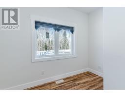 NEWLY CONSTRUCTED BUNGALOW WITH ELEVATED FINISHES ON A QUIET CUL-DE-SAC, WITHIN WALKING DISTANCE TO WAUBAUSHENE BEACH! Walk in, pause, look around, and you'll know why people say you'll feel it when it's the one. Vaulted ceilings, a sun-filled open layout, and an inviting kitchen pull you in instantly. Set on a landscaped 129 x 107 ft lot on a quiet cul-de-sac, with parking for seven, this home features vertical board-and-batten siding, black-trimmed windows, a large front window, and a front porch with soffit lighting, plus a front door with a sidelight. Oak hardwood flooring and pot lights carry through the main living space, and the dining area opens to the backyard for easy everyday flow. The kitchen brings serious style with quartz countertops, white shaker cabinetry, brass hardware, under-cabinet lighting, a double sink, and a generous island centred beneath a sleek three-light linear pendant. A sliding barn door reveals a dedicated office that doubles as a hobby room, playroom, or a flexible third bedroom. Both bedrooms offer double closets and large bedside windows, including a primary suite with a 3-piece ensuite hosting a quartz-topped vanity and a glass-walled walk-in shower, while the main 4-piece bath features a grey vanity with a quartz countertop and a tub-shower combo. The full-height unfinished basement with in-law capability offers a separate entrance, rough-in plumbing, and egress windows. Efficient mechanicals, including a heat pump, gas furnace, and central air, provide year-round comfort. Walk to Waubaushene Beach, Waubaushene Beaches Provincial Park, the Tay Trail, the library, Food Mart, and the park and playground, with quick access to Highway 400 and minutes to marinas, fishing, snowmobile routes, and four-season outdoor fun. (id:61594)
