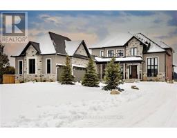Enjoy refined country living in this custom-built 2-storey home, privately set 350' from the road on nearly 2 acres with sweeping pastoral views. Stunning custom build (2022) w/ nearly 5,500 sq. ft. of exquisite living space which includes the finished basement with in-law potential.A grand foyer with 20' ceilings introduces the quality and craftsmanship throughout. The chef's kitchen features quartz counters and backsplash, premium appliances, an 8-burner gas range, cappuccino bar, and walk-in butler's pantry, opening to a stunning Great Room with coffered ceilings, hardwood floors, gas fireplace, and built-in sound. Entertain with ease indoors or out on the expansive covered deck. Upstairs offers 9' ceilings, a serene primary suite with spa-inspired ensuite, a second bedroom with private bath, and two more bedrooms sharing a Jack & Jill. The finished lower level adds a large rec room (rough-in for kitchen/wet bar), gym, storage, and two additional bedrooms-each with its own bath-ideal for in-law or multi-generational living. Enjoy 5 full bathrooms + 2 pce powder room ( Extras include a 4.5-car garage with inside entry, a well-designed mudroom and laundry, and mostly fenced backyard ready for your dream oasis. A perfect blend of privacy, space, and versatility. A rare blend of space, sophistication, and versatility-your private country retreat awaits. (id:61594)