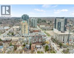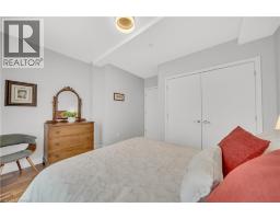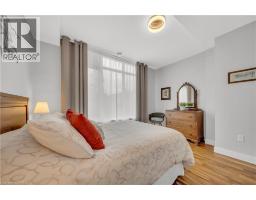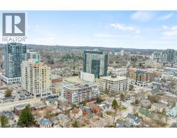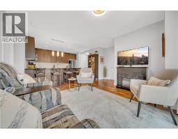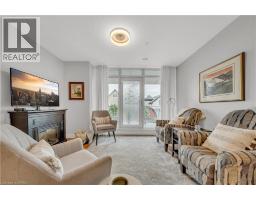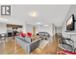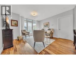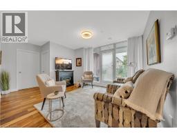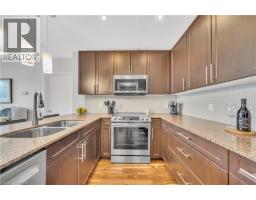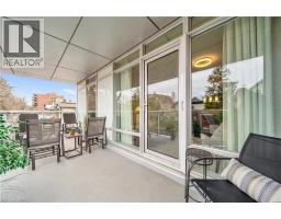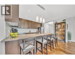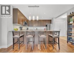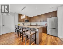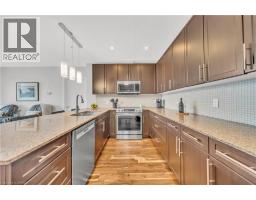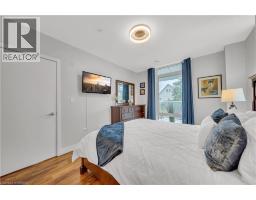 Welcome to 214-188 King Street S, a stylish and meticulously updated 2-bedroom, 2-bathroom corner unit in the heart of Uptown Waterloo. Boasting a bright, open-concept layout, this stunning condo offers over 1,000 sq ft of modern living space with premium upgrades throughout. The expansive kitchen is a chef's dream, featuring tall 4-shelf cabinetry, granite countertops, a generous peninsula with pendant lighting, and high-end stainless steel appliances - including a Bosch dishwasher and Samsung stove and microwave. Large windows flood the living space with natural light and lead to a spacious private balcony with a charming brick end wall - perfect for planters and outdoor décor. Enjoy BBQs and outdoor entertaining right from your unit. The primary suite includes a walk-in closet and a beautifully upgraded ensuite, while the second bedroom and full bath provide ideal flexibility for guests or a home office. Additional upgrades include fresh paint, modern light fixtures, new faucets, curved shower rods, updated bathroom fans, and custom window coverings. Enjoy the convenience of a heated ground-level parking garage with one owned space and access to three EV charging stations. The storage locker, amenity room, and fitness centre are all located on the same floor for ultimate convenience. Set in a quiet, professionally managed building with a welcoming community atmosphere - featuring monthly socials and a mix of professionals and retirees. Located directly on the ION light rail line and just steps from Vincenzo's, The Bauer Kitchen, the Spurline Trail, and Iron Horse Trail - this is Uptown Waterloo living at its finest. (id:61594)