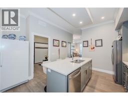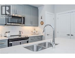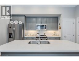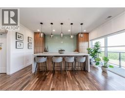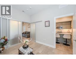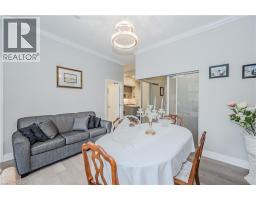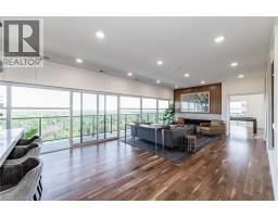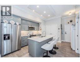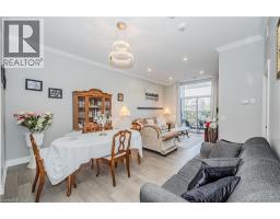 Make this gorgeous ground-floor condo located in the prestigious south end of Guelph yours. Professionally designed 2-bedroom, 2-bathroom suite with luxurious upgrades and TWO underground parking spaces. The 10' ceilings bring in more natural light and make the open-concept floor plan feel very spacious. With stunning finishes and a great layout, spending time at home will feel relaxing and joyful. The modern kitchen has plenty of cabinets, numerous drawers and a walk-in pantry for additional storage. Undermount lighting, built-in stainless steel appliances, a stylish backsplash, and a large island complete the kitchen. The broad dining area overlooks the living room. The charming living room with large sliding doors leads to a private balcony. Enjoy a morning coffee or afternoon tea in your secluded outdoor space. The large primary bedroom has a walk-in closet and a luxurious ensuite bathroom with a floor-to-ceiling glass shower and heated flooring. With glass sliding doors that open up to the living/dining room, you will be pleased with the functionality of a second bedroom. With a Murphy bed already installed, it can be used as an office and/or a bedroom. The main 4-piece bath with heated floors and in-suite laundry completes this suite. Quartz counters and hardwood flooring throughout, crown molding, and pot lights are a bonus. This building has so many amazing amenities to offer. With an HD golf simulator, a very well-equipped gym, a guest suite, bicycle storage, and a gorgeous 14th-floor resident lounge with a separate bar area, games room, and a balcony with panoramic views and a great scenery. If you are expecting more guests, you can also book the building's guest suite. Located in Guelph's desirable south end, this beautiful condo is just steps away from prime shopping, restaurants, banks, and cinema. Easy access to HWY 401 and on a bus route to UoG. (id:61594)