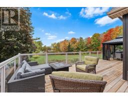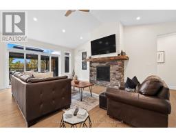 Discover lakeside living at its best with this stunning custom-built bungalow, offering over 2,000 sq. ft. of main floor living space and nearly 60' of shoreline on Dog Lake. Crafted with both quality and comfort in mind, this home features an ICF foundation, soaring 10' ceilings, a vast partially finished walk-out lower level, and engineered hardwood & tile flooring throughout. The open concept impresses, with the bright kitchen featuring quartz countertops, premium cabinetry and large separate dining area open to the spacious living room - highlighted by a gas fireplace and 12-foot patio doors leading to a 650 sq. ft. deck with glass and aluminum railings providing breathtaking panoramic views of the area. The primary suite is tucked away at one end of the home offering privacy, and finished with cove ceilings and a spa inspired 5-piece ensuite with glass-enclosed shower and soaker tub. Two other bedrooms and a full bath are also here on the main level. The walk-out lower level provides extra flex space and finds in-floor heating roughed-in, and the attached SIX-car garage with epoxy flooring is incredible. This one is a beauty - with wonderful curb appeal from the stamped concrete front porch all the way around the yard space right to the waterfront with a new floating dock. Packed with upgrades and with high end finishes throughout, this one should not be missed. Survey, floor plans and supporting documents are available upon request. (id:61594)