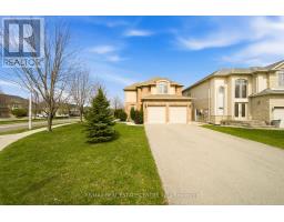 Welcome to this spacious and beautifully maintained 4+1 bedroom, 3.5 bathroom Maple Crest home in the heart of Ancaster's sought-after Meadowlands-perfect for growing families. Impressive curb appeal greets you with a standout front entrance, balcony, manicured landscaping, pebbled concrete walkway, and welcoming presence. Step inside to a grand two-storey foyer with 9-foot ceilings, setting the tone for the open-concept layout. Elegant details including accent pillars, rich hardwood flooring, pot lights, and California shutters add warmth and sophistication throughout the main level. The inviting family room features a cozy gas fireplace and flows seamlessly into the upgraded kitchen, designed for everyday living and entertaining. Enjoy premium custom cabinetry, granite countertops, under-cabinet lighting, upgraded tile, and stainless steel appliances (2021-2022). A bright dinette offers walkout access to the renovated backyard with red pebble concrete patio, wrought iron fencing, new wood fence, lush gardens, and mature pine trees for added privacy. The dining room is ideal for hosting, while the main level also includes a laundry room, powder room, and inside entry from the double garage. Upstairs, generously sized bedrooms feature large arched windows that fill the space with natural light. The primary retreat offers a walk-in closet and private ensuite with soaker tub and separate shower. Updated hardwood flooring adds a modern touch throughout. The finished basement extends the living space with a large recreation area, additional bedroom, full bathroom, ample storage, and carpet-free laminate flooring. Thoughtful updates include furnace (2022), A/C (2024), lighting, fresh paint (2022), garage door motor (2018), and exterior improvements. Located in a prime family-friendly neighbourhood close to top-rated schools, parks, shopping, restaurants, transit, and major highways-this home offers the perfect blend of space, style, and location. (id:61594)