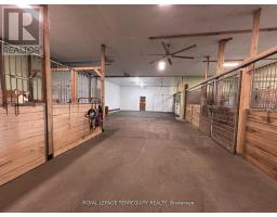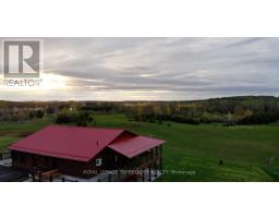 This is not your run-of-the-mill country property! Consider this exquisite 20 Acre hobby farm, custom log style home built in 2008 & tastefully remodelled in 2021-25. Your family will love the generously sized rooms & if you have horses, they too will be pampered with extra-large stalls, seamless stall matts & spacious indoor training area. Former golf clubhouse is currently configured with 2+ 1 bedrooms & 2 bathrooms with plenty of space to create extra rooms if you so choose. Originally built for commercial use, it boasts extra features not typically found in a home including 400-amp service, Generac generator attached directly to the electric panel, 2 floors each with separate heating, cooling & septic systems & a spacious wrap-around deck overlooking the breathtaking landscape. Upgrades include 5 new entrance doors, metal roof, log restoration (blasting), completely new kitchen, new bathrooms, new furnace/AC, professional landscaping, paved driveway, fencing & much more. 50x110 outbuilding with concrete pad, 200amps, with its own septic, separate well & hot/cold water. This outbuilding is currently configured with a 2600sf insulated section having 5 large stalls, tack/feed room, office, washroom with shower, and a 40x40 workshop/garage area where you have room for all your toys & projects. There is an additional 17x60 hay/storage barn. The home features an open concept living/dining room with large windows, generously sized bedrooms & fully finished walkout basement. Enjoy the spectacular sights, sounds & closeness to nature & wildlife. Minutes to Hwy's. 37 & 7 & half hour to the 401. Live your best life! (id:61594)
