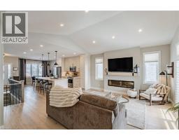 Welcome to this stunning custom-built, all-brick Dubecki Home located in Paris Ontario, surrounded by walking trails and just minutes to the Brant Sports Complex. Conveniently close to everyday shopping, walk-in clinics, local pubs, and only a short drive to historic downtown Paris, this location offers both lifestyle and convenience. Thoughtfully designed with quality craftsmanship and upscale finishes throughout, this home offers exceptional comfort, style, and functionality. The bright and inviting main floor features a vaulted ceiling with pot lights, engineered hardwood flooring, and a cozy fireplace that anchors the living space. The chef-inspired kitchen is a true showstopper, complete with quartz countertops, soft-close cabinetry, stainless steel appliances, and an oversized quartz island offering storage, a sink, dishwasher, and seating—perfect for entertaining. This home offers four spacious bedrooms, two located on the main floor, including a beautiful primary suite featuring a walk-in closet and a private ensuite bathroom. In total, there are three full bathrooms—two on the main level and one in the basement—all finished with elegant quartz countertops. The fully finished basement is warm and welcoming with 9-foot ceilings, plush carpet for added coziness, a gas fireplace with a stone surround, and large egress windows that flood the space with natural light. This level also includes two additional bedrooms, a full bathroom, a beautifully designed laundry room, and a large utility area providing excellent storage space. Additional highlights include sliding patio doors with California-style shutters, a covered back deck, covered front porch, direct entry from the foyer to the garage, and abundant storage throughout. With high-end finishes at every turn, this home is truly move-in ready. An exceptional opportunity to own a custom home in one of Paris’s most sought-after communities—this property must be seen to be fully appreciated. (id:61594)
