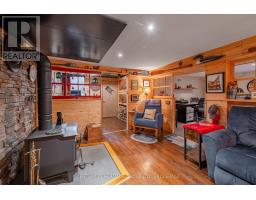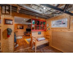 If I got excited about every house, I'd be nothing more than a puddle by now, or one of those little dogs that runs into walls. Luckily, I've learned to ration my enthusiasm, to save it up like pocket money, waiting for the right place to spend big. 19 Fifth Avenue, plum centre of Kingscourt and close to the parks and allotments, churches and the high school, is an early 2026 standout. From its last-forever and forest-green metal roof, to its lower level Muskoka cottage set-up, as convincing as a movie set, this detached and brilliant home is just slightly different from anything I've seen before in the neighbourhood. The renovations are unusually comprehensive and take in both infrastructure and energy-efficiency (insulation, vinyl siding, furnace, AC) and aesthetics (bathrooms, luxury vinyl flooring, stainless steel appliances, windows); it's a long list, much longer than I'm letting on. The feeling is of a home in need of nothing but your company. There are two bedrooms upstairs, and the bigger of the two (with its vaulted ceiling, its clerestory window) is lined with pine and feels like a sanctuary, a secluded haven from the daily grind. There is a third bedroom on the main level, and if you need a fourth, then it's already set up for you in the basement, one room over from the woodstove. The re-done kitchen is spacious enough for your dining table and your nightly catch-ups. The idea is that you could have a family at 19 Fifth and not do a thing, just send the kids on foot to school and pass the evenings sitting on the swing-chair that hangs out front all summer like a local landmark. The garage (how did I forget the adorable, low-slung period garage?) contains a workshop off to one side, and the garden it sits in is, for want of a better word, simply splendid (check out the summer photos). (id:61594)