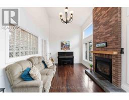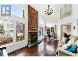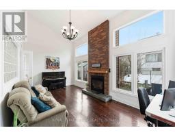 Welcome to this charming executive two-storey 4+1 bedroom family home with a double built-in garage, ideally located in the prestigious Hunt Club Woods on a quiet, family-friendly street located just steps from scenic nature trails and a short walk to the renowned Ottawa Hunt and Golf Club, this home offers an exceptional lifestyle. This tastefully updated home features hardwood and ceramic flooring throughout both levels. The main level boasts a spacious dining room that is ideal for entertaining and an adjacent living room with a stunning two-sided gas fireplace, adding warmth and ambiance to both spaces. The sun-filled, south-facing family room impresses with large picture windows, a soaring vaulted ceiling, and a cozy gas fireplace. The spacious gourmet kitchen is designed for both everyday living and entertaining, complete with quartz composite countertops, a large centre island, and a convenient breakfast bar. An elegant hardwood staircase leads to the upper level, where you'll find a gracious primary bedroom with large picture windows that overlook the ravine, with large walk-in closet and a luxurious 5-piece ensuite. Three additional generously sized bedrooms complete this level. The professionally finished basement (2018) offers excellent additional living space, including a recreation room with a gas fireplace, a spacious bedroom, a full 4-piece bathroom, and a versatile laundry/hobby room with abundant storage, plus a utility room and storage area. Step outside to enjoy beautiful sunrises from the newer rear composite deck, along with interlock walkways, a fenced backyard, and stunning perennial gardens. Overlooking a serene ravine - No front neighbours - this home is perfectly situated on an exceptional quiet street. Just move in! (id:61594)