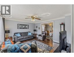 Looking for a 3-bedroom, 2-bath home with a spacious family room addition and not one—but two garages? This is the one! Situated on an extra-wide lot, the double-wide driveway easily accommodates up to 8 vehicles—perfect for families, guests, or hobbyists. A newly finished flagstone porch with aluminum railing creates a welcoming first impression as you enter the front foyer, complete with vinyl flooring and a convenient entry closet. The bright living room features durable laminate flooring that flows seamlessly into a separate dining area—ideal for entertaining. Step through French doors into the family room addition, offering a cozy natural gas fireplace, broadloom flooring, and built-in storage. The eat-in kitchen is both functional and offers vinyl flooring, ample cabinetry, and a classic subway tile backsplash. A 4-piece bathroom with ceramics and a relaxing soaker tub completes the main level. Enjoy the added bonus of a large 3-season sunroom, providing a sheltered outdoor space that connects to a two-tier deck and a fully fenced backyard. The yard is fully landscaped and features two gazebos, along with gated access to a detached garage/workshop with hydro—perfect for the hobbyist or extra storage. The sunroom also offers convenient access to the main cinder-block built garage, making everyday tasks like unloading groceries a breeze. Upstairs, you’ll find a bright landing with sliding doors overlooking the flat roof, along with three generously sized bedrooms, each with ample closet space, and an updated 4-piece bathroom.The lower level includes a laundry area, utility room, and additional storage space. Some notable updates include shingles, windows and flooring. Proudly maintained and located in a quiet West Brant neighbourhood, this home is close to schools, parks, walking trails, amenities, and highway access—offering both comfort and convenience. (id:61594)