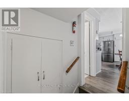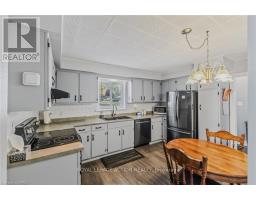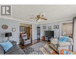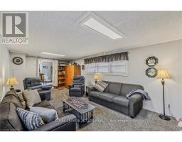 Looking for a 3-bedroom, 2-bath home with a spacious family room addition and not one-but two garages? This is the one! Situated on an extra-wide lot, the double-wide driveway easily accommodates up to 8 vehicles-perfect for families, guests, or hobbyists. A newly finished flagstone porch with aluminum railing creates a welcoming first impression as you enter the front foyer, complete with vinyl flooring and a convenient entry closet. The bright living room features durable laminate flooring that flows seamlessly into a separate dining area-ideal for entertaining. Step through French doors into the family room addition, offering a cozy natural gas fireplace, broadloom flooring, and built-in storage. The eat-in kitchen is both functional and offers vinyl flooring, ample cabinetry, and a classic subway tile backsplash. A 4-piece bathroom with ceramics and a relaxing soaker tub completes the main level. Enjoy the added bonus of a large 3-season sunroom, providing a sheltered outdoor space that connects to a two-tier deck and a fully fenced backyard. The yard is fully landscaped and features two gazebos, along with gated access to a detached garage/workshop with hydro-perfect for the hobbyist or extra storage. The sunroom also offers convenient access to the main cinder-block built garage, making everyday tasks like unloading groceries a breeze. Upstairs, you'll find a bright landing with sliding doors overlooking the flat roof, along with three generously sized bedrooms, each with ample closet space, and an updated 4-piece bathroom. The lower level includes a laundry area, utility room, and additional storage space. Some notable updates include shingles, windows and flooring. Proudly maintained and located in a quiet West Brant neighbourhood, this home is close to schools, parks, walking trails, amenities, and highway access-offering both comfort and convenience. (id:61594)