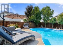 Situated in the beautiful and highly desirable Stewarts Mill neighbourhood, this wonderful executive home offers the perfect blend of an ideal, quiet location for families with the convenience of access to amenities including schools and parks. This detached 2-storey home presents 4 bedrooms, 4 bathrooms, a finished lower level and a backyard oasis that is truly a dream come true. Warm and welcoming front foyer leads into your formal living/dining room combination featuring hardwood flooring, crown moulding and vaulted ceiling. An open concept floor plan, at the rear of the home, is comprised of the kitchen that overlooks the breakfast area as well as the family room. Modern white kitchen offers stainless steel appliances and quartz countertops with a walk-out from the breakfast area to the rear yard sanctuary. Family room features hardwood, built-in bookcases and cozy gas fireplace for chilly fall nights. Main floor laundry for added convenience. In the evening retreat to your primary bedroom on the upper level that highlights hardwood flooring, crown moulding, large walk-in closet and beautifully updated 5 piece ensuite bath. Three remaining bedrooms are all very good in size as well as main 4 piece bath. Plenty of additional living space on the lower level finished with vinyl flooring, an abundance of pot lights and striking 3 piece bath. Double car garage with brand new doors and parking for an additional 4 vehicles. Rear yard is a peaceful haven with kidney shaped heated salt water inground pool, hot tub, interlocked patio and cabana surrounded by thousands of dollars spent in professional landscaped gardens. Schedule a showing today of this tremendous property! (id:61594)