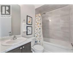 Step into this modern 3-storey, 2+1 bedroom townhouse, just steps from all amenities, shopping, and easy highway access. Boasting 1,400 sq. ft. of beautifully finished living space and soaring 9-ft ceilings, this home combines style, comfort, and convenience. The open-concept main floor features a contemporary kitchen with S/S appliances and sleek cabinetry, flowing into a bright living and dining area perfect for entertaining. Upstairs, the spacious primary bedroom with a 3pc ensuite, a large second bedroom and additional full bathroom, while the lower level provides a versatile space for a guest bedroom, home office, media room, or living area. Enjoy quality finishes throughout, abundant natural light, and low condo fees, making this townhouse as practical as it is stunning. Your ideal Ancaster lifestyle awaits! (id:61594)
